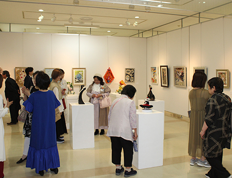 本展のご来賓として、広島市長の松井一實氏、国際平和美術会名誉顧問で元UNESCO日本国政府代表部特命全権大使の木曽功氏、そして原爆被害者の健康と生活の諸問題の解決、核兵器のない世界を目指して活動を行なっている、広島県原爆被害者団体協議会理事長の佐久間邦彦氏がご来場されました。平和を尊びそれを芸術からアプローチした本展に、ご来賓それぞれから励ましのお言葉をいただきました。