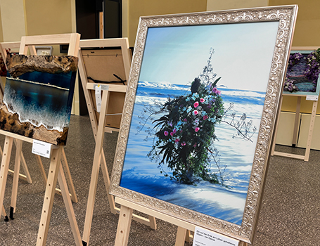 歴史と文化を紹介する施設に隣接する展覧会場に、日本各地から集まった日本画、洋画、彫塑、陶芸、工芸、写真、書道など195点が展示されました。会期中、多くのご来場者で賑わい、会場内が熱気に満ちるなか、作品を鑑賞いただくことが叶いました。
