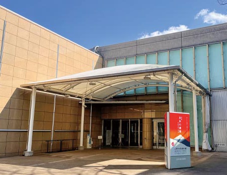 巨大な壁面バナーでお客様をお出迎え
