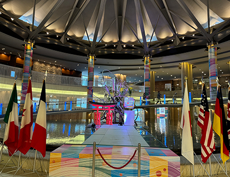 「グランドプリンスホテル広島」ではG7サミットのモニュメントがお出迎え